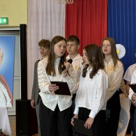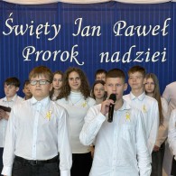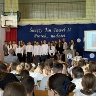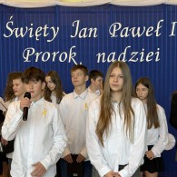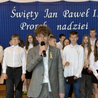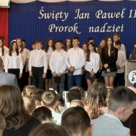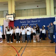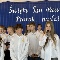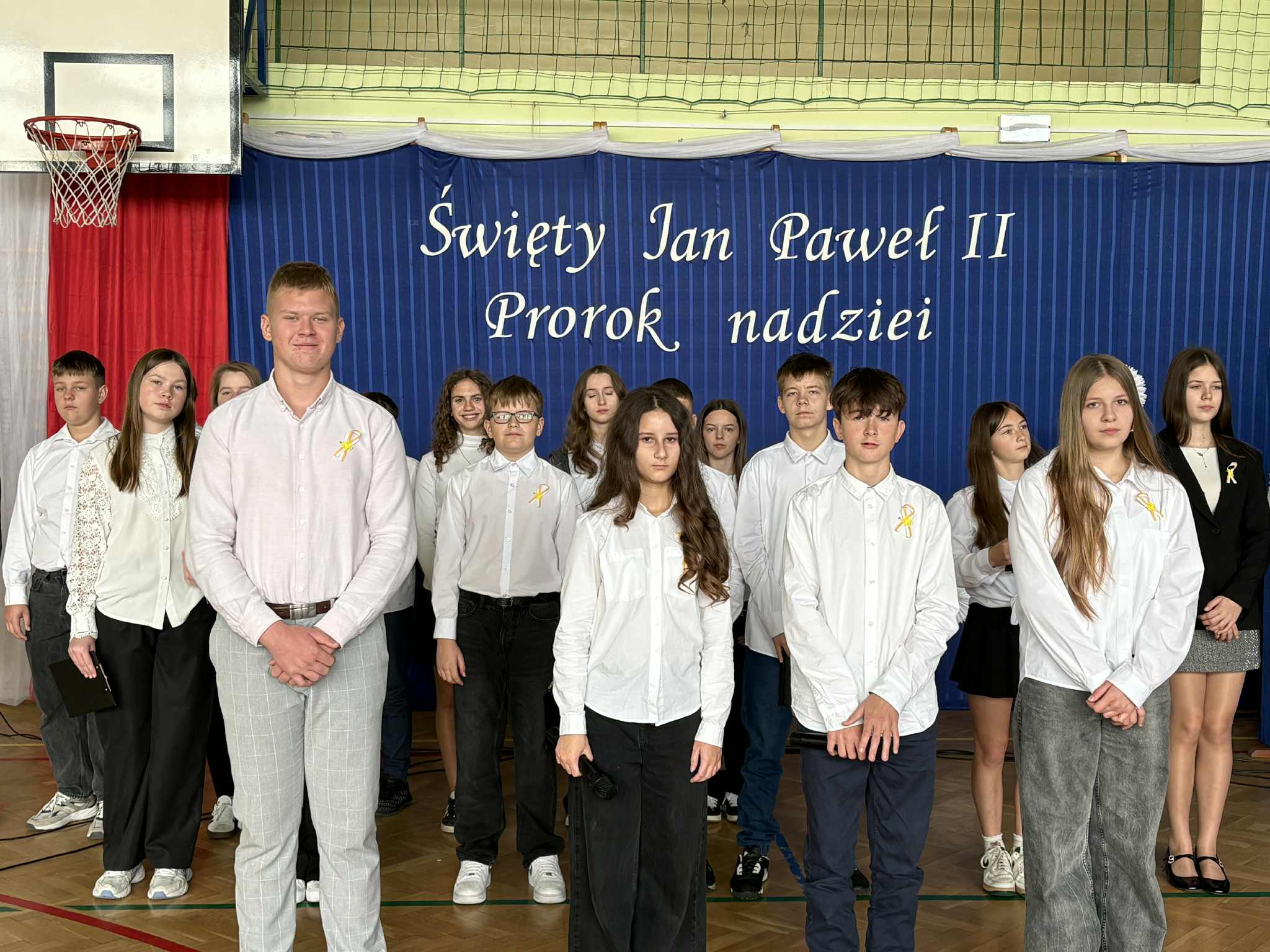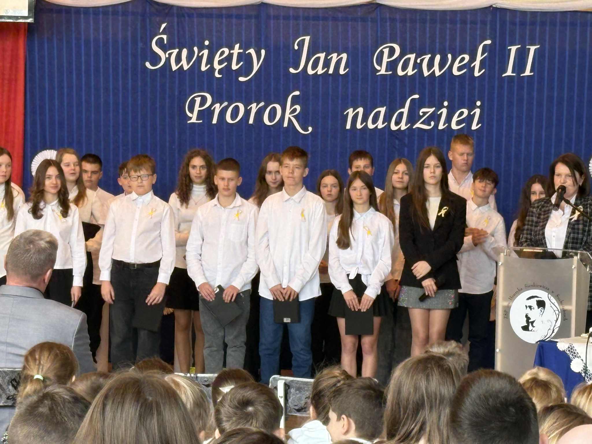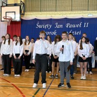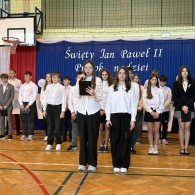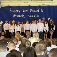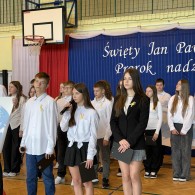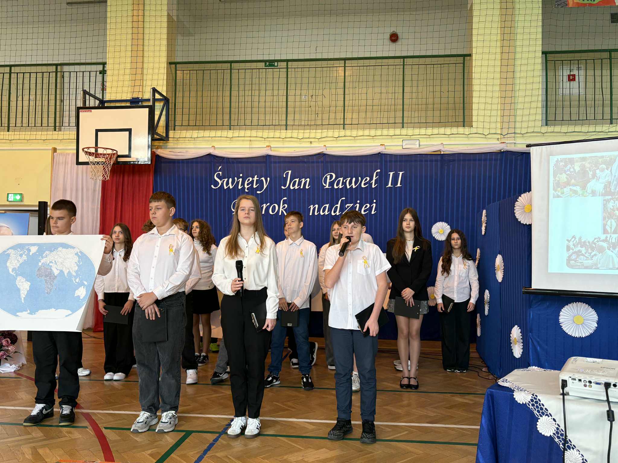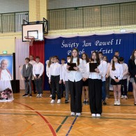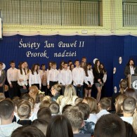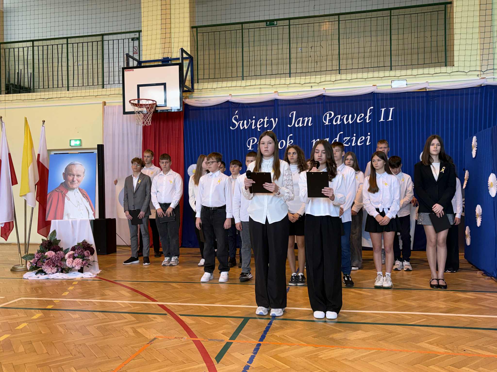 Program artystyczny wzbogaciły nastrojowe wiersze oraz fragmenty homilii Ojca Świętego, które skłaniały do refleksji nad wartościami, jakimi kierował się Jan Paweł II. Szczególnym i niezwykle wzruszającym momentem była wspólna pieśń „Barka” – ukochana przez Papieża – która zabrzmiała z głębi serc całej społeczności szkolnej, tworząc atmosferę modlitwy, wdzięczności i jedności.