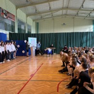 W podniosłej atmosferze głos zabrała pani Dyrektor Agnieszka Budek, która w pełnych mądrości i serca słowach podziękowała uczniom oraz nauczycielom za przygotowanie uroczystości. W swoim przemówieniu skierowała do wszystkich obecnych wzruszające przesłanie, zachęcając, byśmy w codziennym życiu kontynuowali dzieło Świętego Jana Pawła II – byli otwarci na potrzeby drugiego człowieka, okazywali empatię, dobroć i miłosierdzie, wyciągając pomocną dłoń do tych, którzy jej potrzebują, i nigdy nie pozostawali obojętni wobec cierpienia innych.