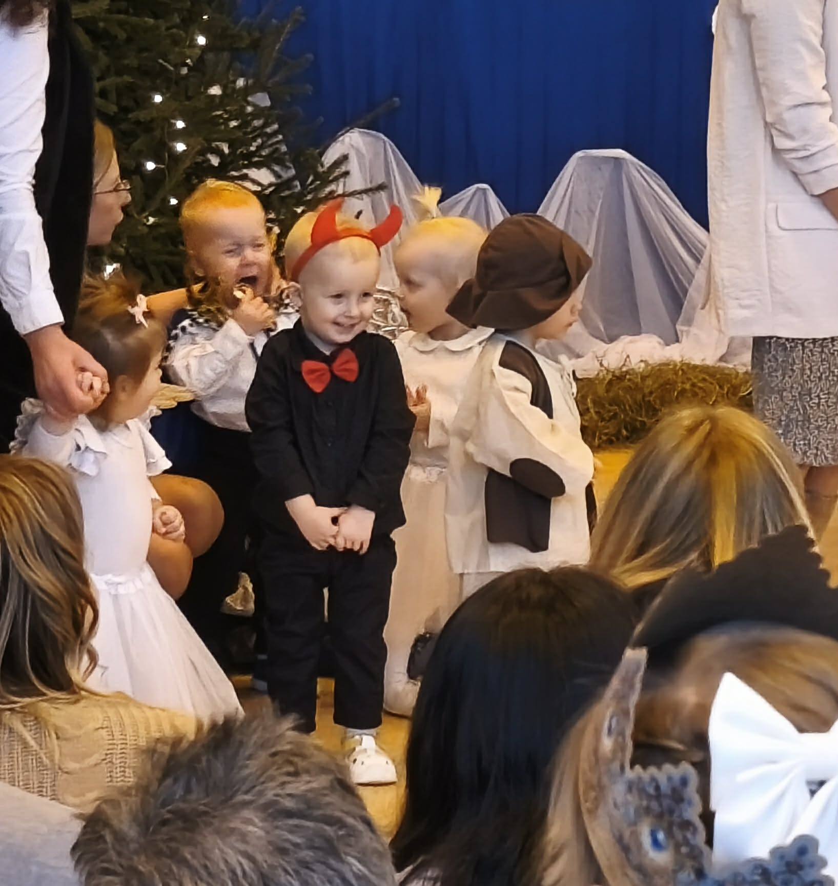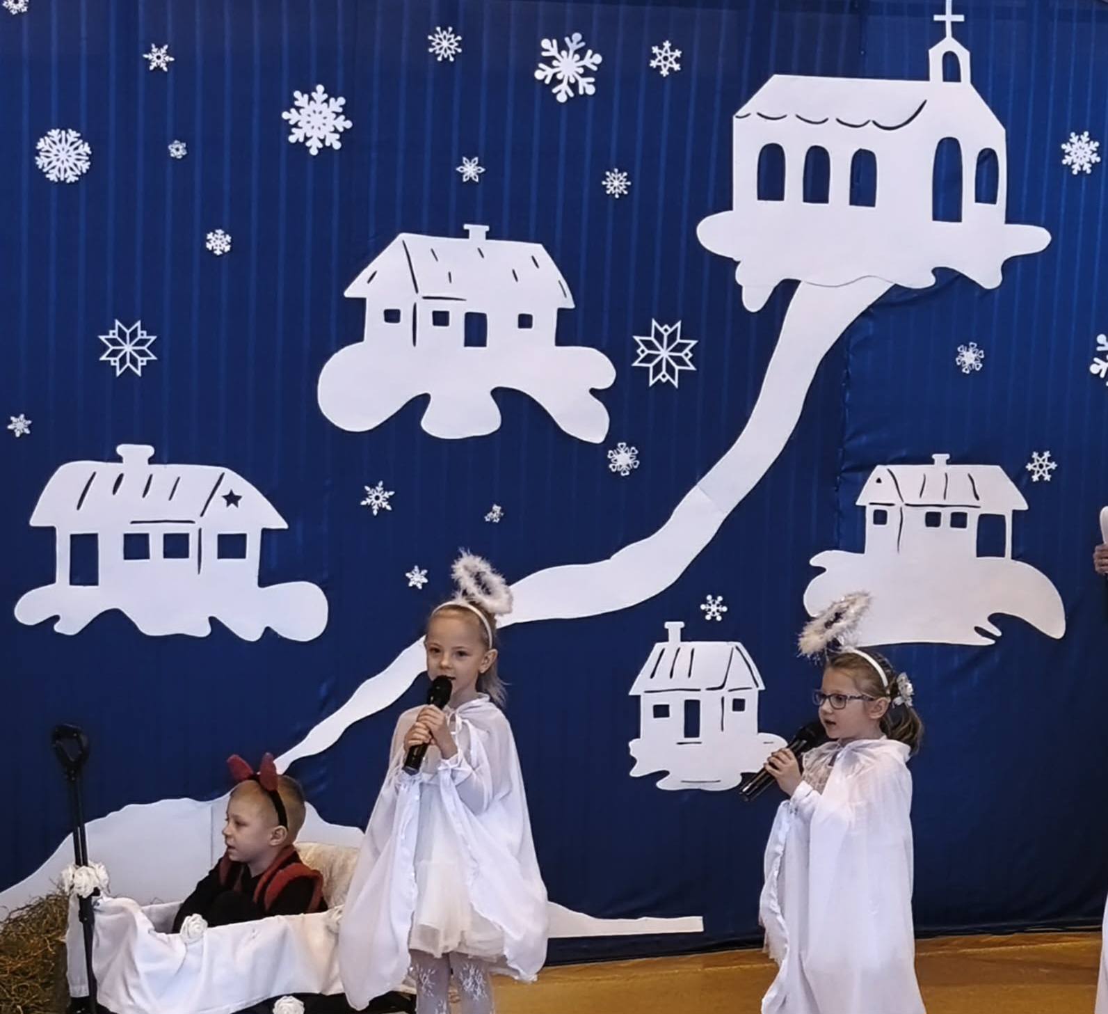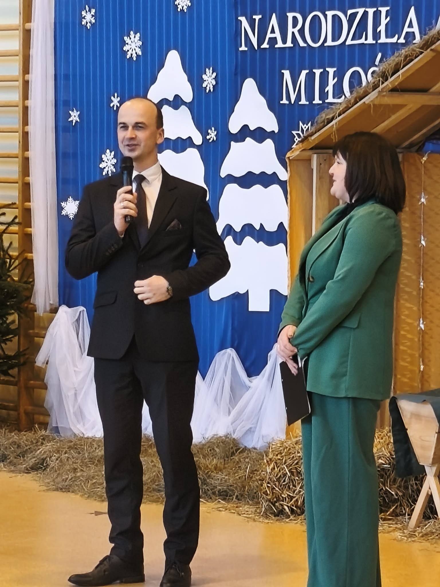 Tam popłynęły do wszystkich mieszkańców naszej gminy serdeczne powitania oraz noworoczne życzenia z rąk Pani Dyrektor Agnieszki Budek i Pana Wójta Tomasza Starzewskiego. Szczególne chwile wzruszenia przyniosły jasełka w wykonaniu naszych najmłodszych mieszkańców. Przedszkolaki i dzieci z klubiku prezentując spektakl „Oto dziś narodziła się miłość”, przypomniały nam, jak ważne są bliskość, dobro i magia tego wyjątkowego czasu.
