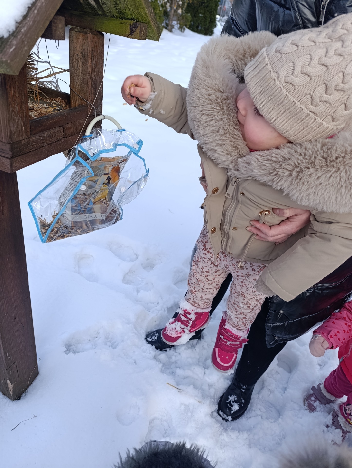 A następnie wyszliśmy do prawdziwego karmnika, gdzie wspólnie zostawiliśmy przysmaki dla ptaków.