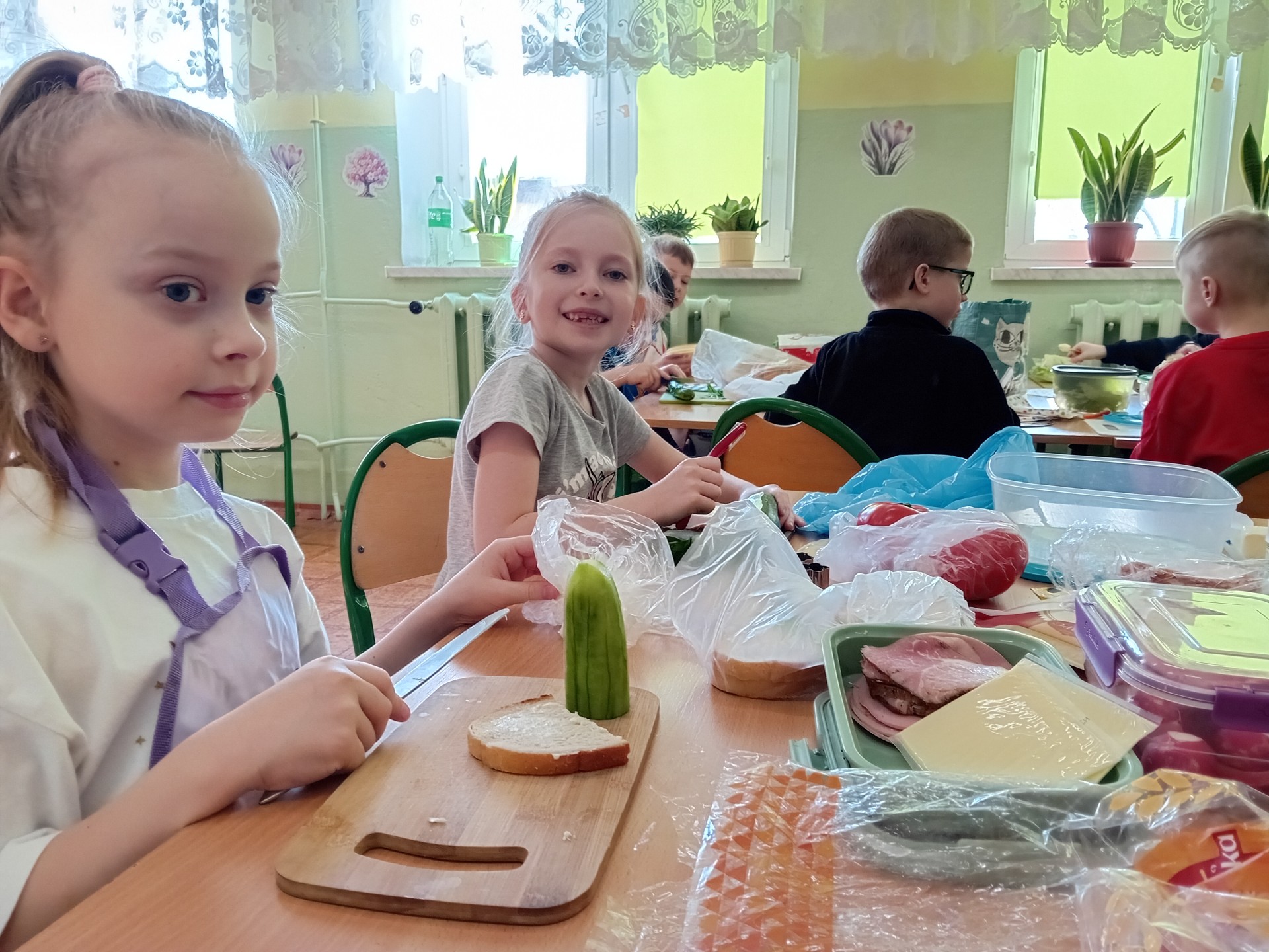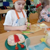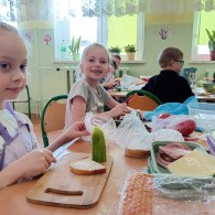 Dzieci z zaangażowaniem uczestniczyły w przygotowaniach – samodzielnie komponowały kanapki, dzieliły się składnikami oraz pomagały sobie nawzajem. W trakcie zajęć panowała miła i radosna atmosfera, sprzyjająca rozmowom i wspólnej zabawie.