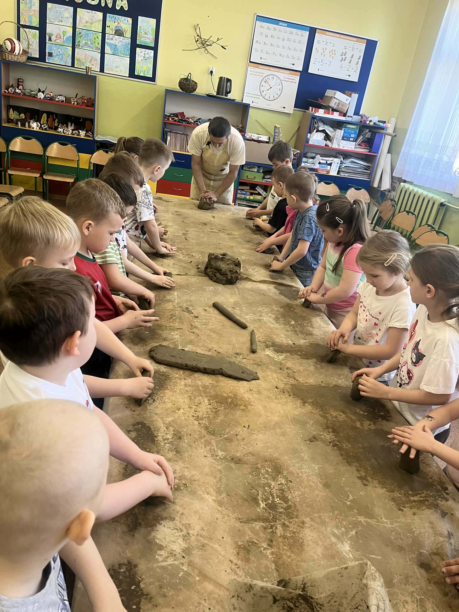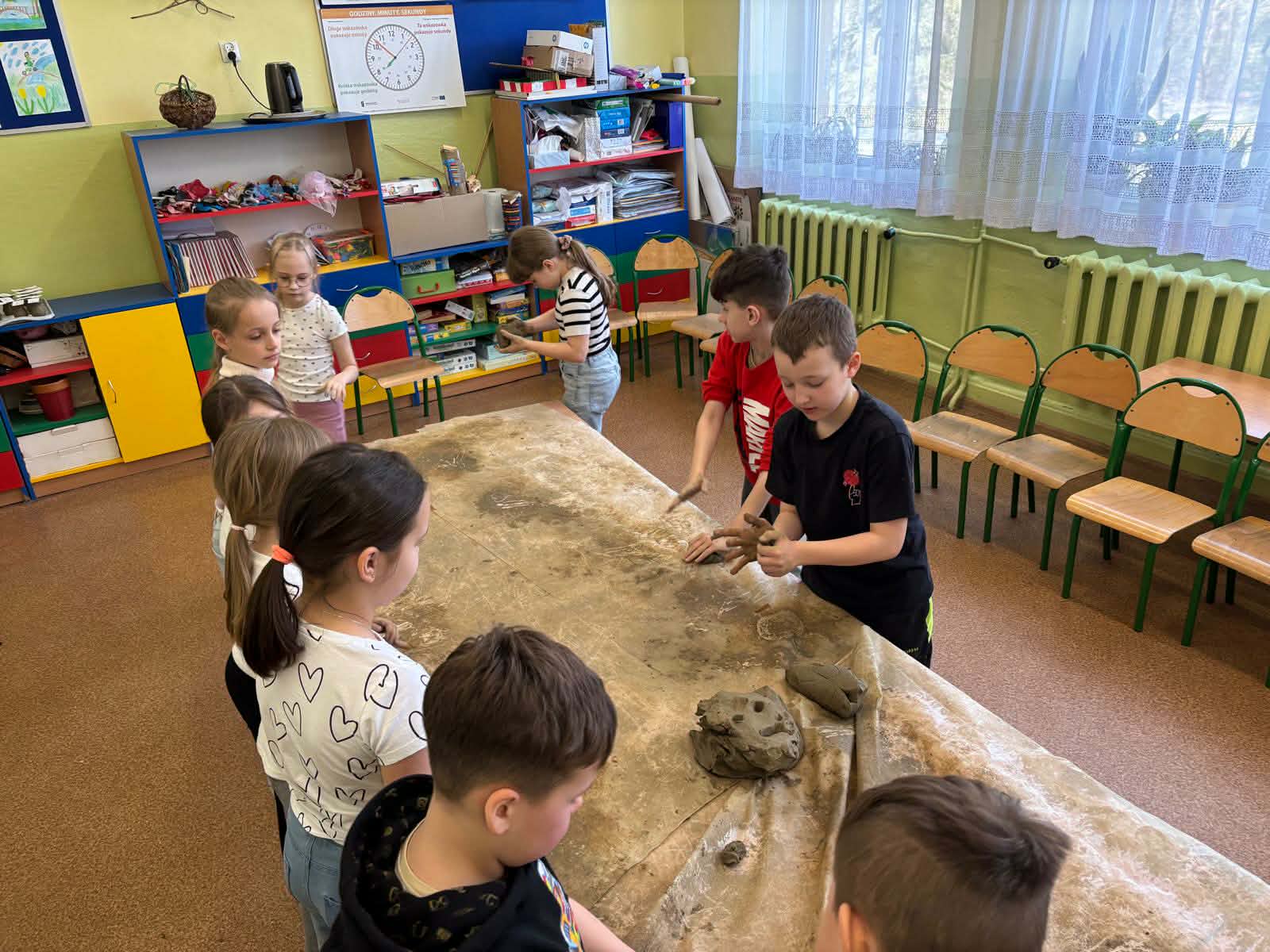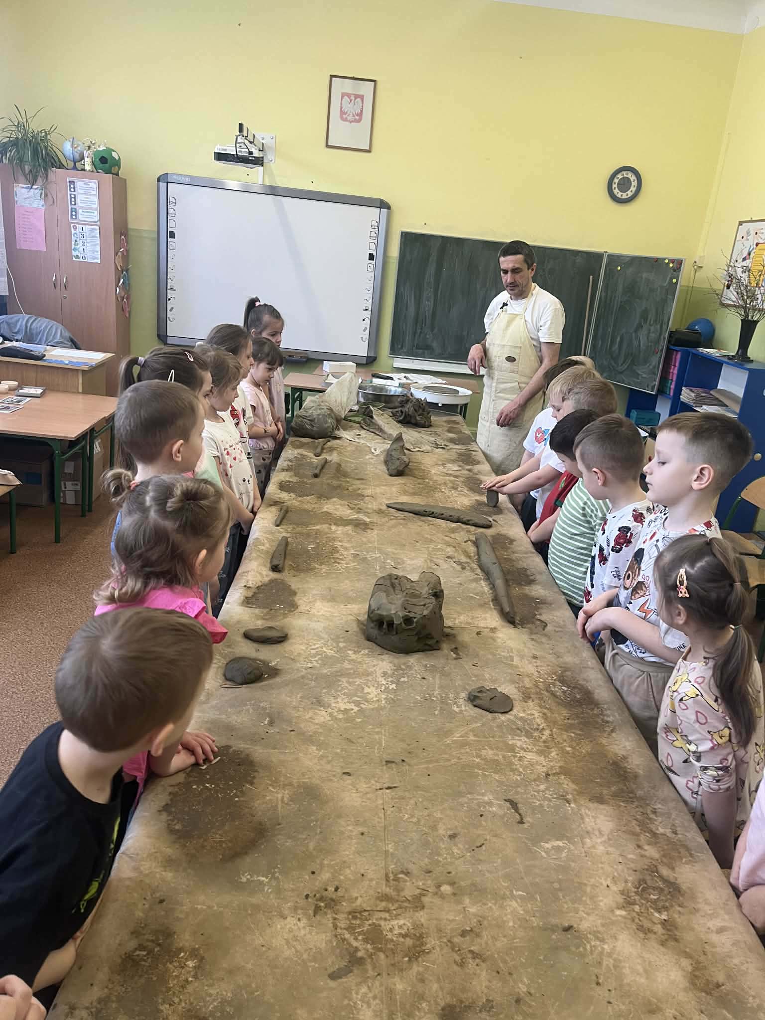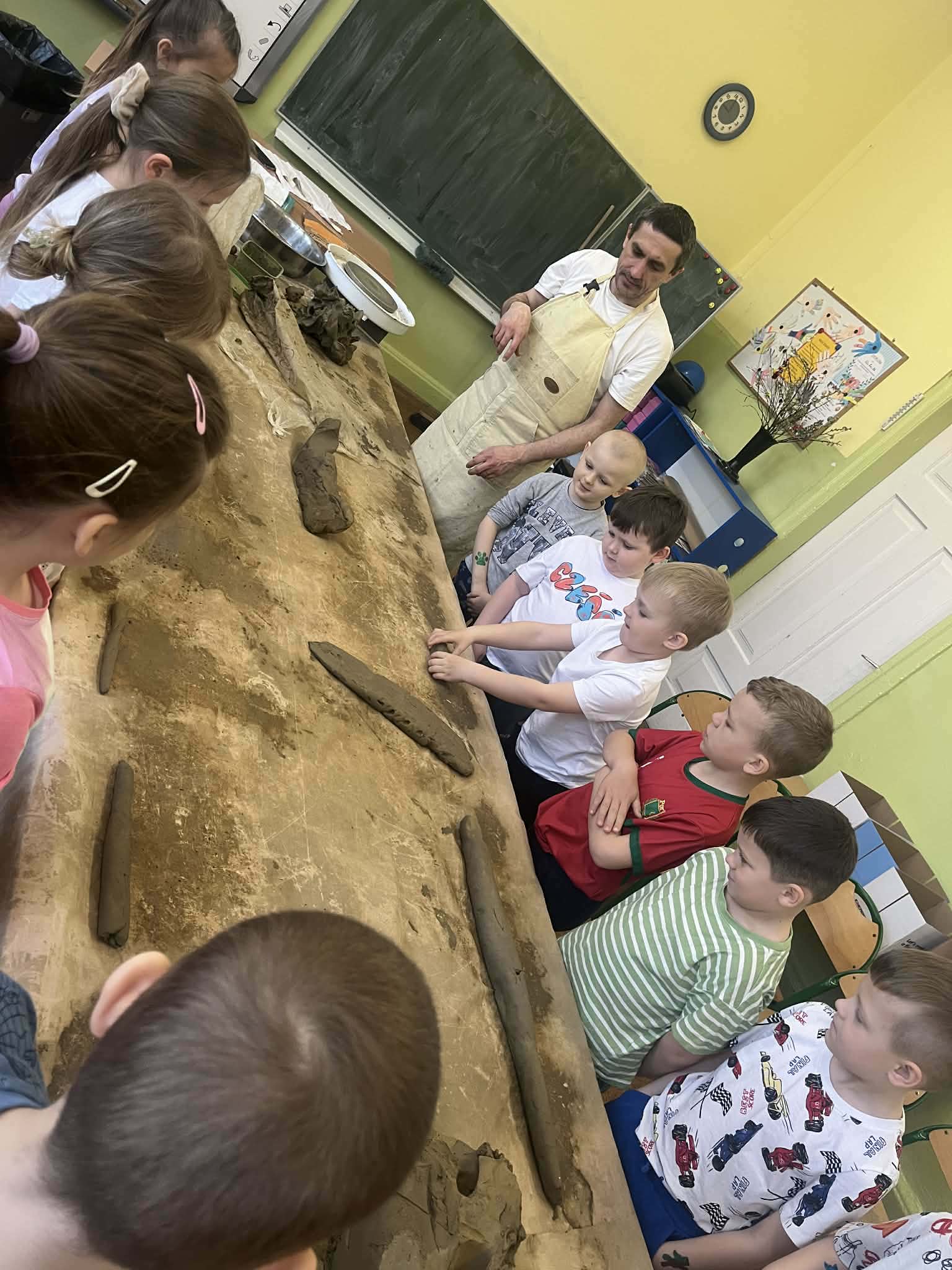 W naszej szkole odbyły się wyjątkowe zajęcia z tradycyjnego garncarstwa. Uczniowie mieli okazję poznać historię tego dawnego rzemiosła oraz przekonać się, jak wyglądała praca naszych przodków. W programie znalazły się: • Pokazy mistrzowskie na kole garncarskim. • Warsztaty praktyczne, podczas których każdy uczeń mógł samodzielnie spróbować sił w toczeniu naczyń na kole. • Ręczne lepienie gliny, co było świetnym treningiem kreatywności i sprawności manualnej. To była niezwykła lekcja historii i twórczej pracy, która pozwoliła nam własnoręcznie stworzyć małe dzieła sztuki z gliny!
