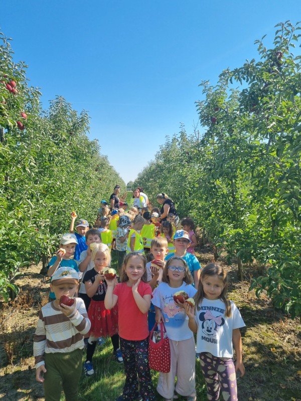 23/09/2025Dwie najstarsze grupy naszych przedszkolaków witały dziś jesień w sadzie. Mogły oglądać różne gatunki jabłoni. Z radością podziwiały drzewa uginające się od owoców, a także spróbować jabłek prosto z gałęzi. Czytaj dalej »