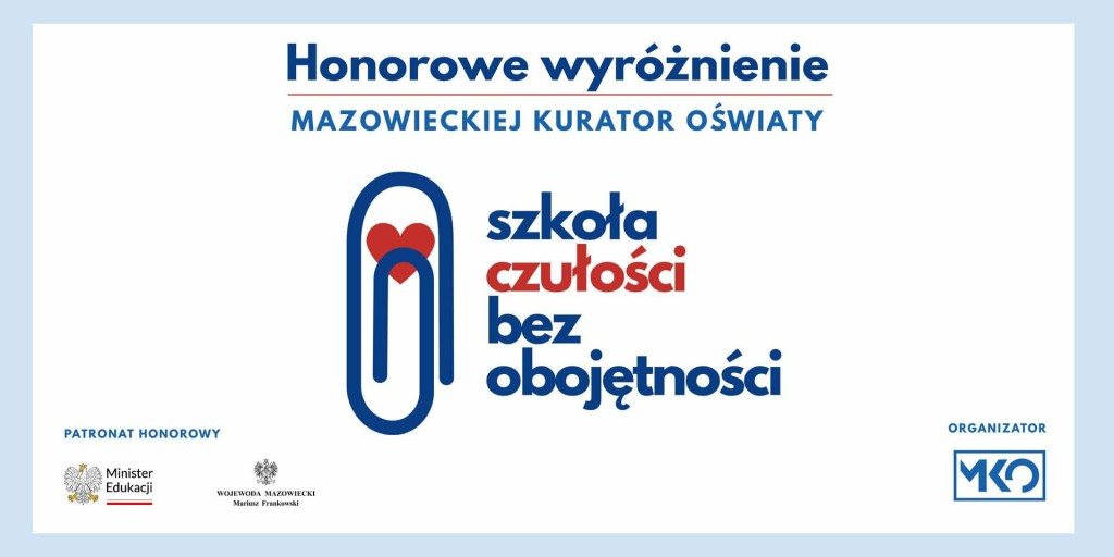 16/12/2025W dniu 16 grudnia 2025 roku w Warszawie odbyła się uroczysta gala, podczas której wręczono Honorowe wyróżnienie przyznane przez Mazowiecką Kurator Oświaty, Panią Wiolettę Krzyżanowską, za inicjatywę „Szkoła czułości, bez obojętności”. Czytaj dalej »