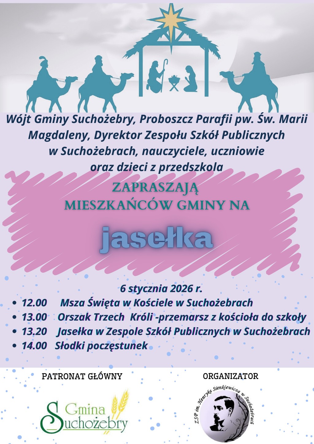 16/01/202616 stycznia 2026r. w Zespole Szkół Publicznych im. Henryka Sienkiewicza w Suchożebrach odbył się IV Gminny Przegląd Kolęd i Pastorałek „Hej kolęda” pod patronatem honorowym Wójta Gminy Suchożebry. Czytaj dalej »