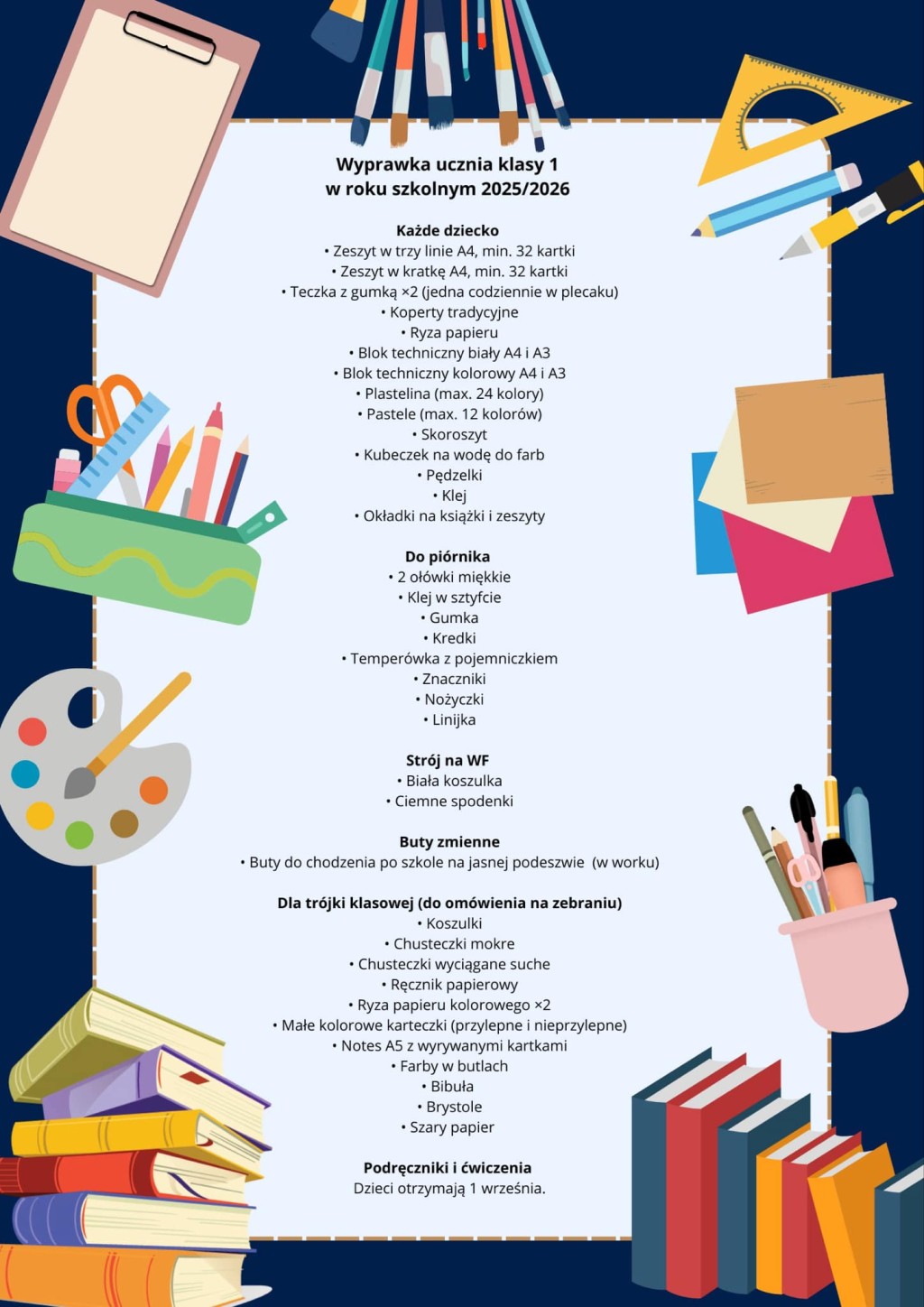 Wyprawka ucznia klasy I rok szkolny 2025/2026